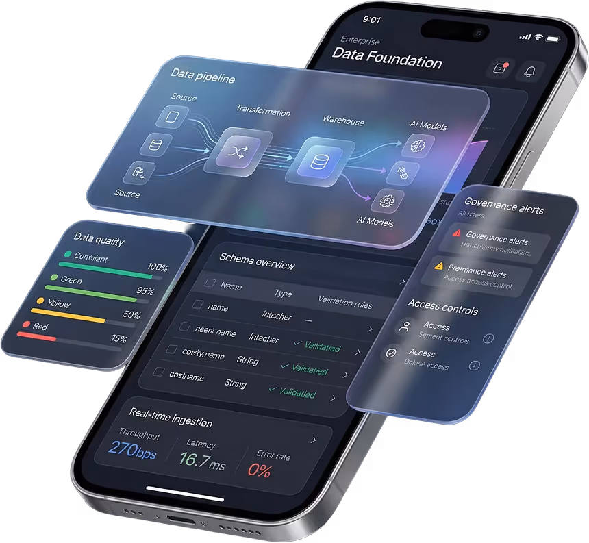 AI relies entirely on the quality of your data. Without consistent, clean, and connected data, AI models produce unreliable outputs. A data foundation ensures your data is accurate, trustworthy, and structured in a way that supports scalable AI.